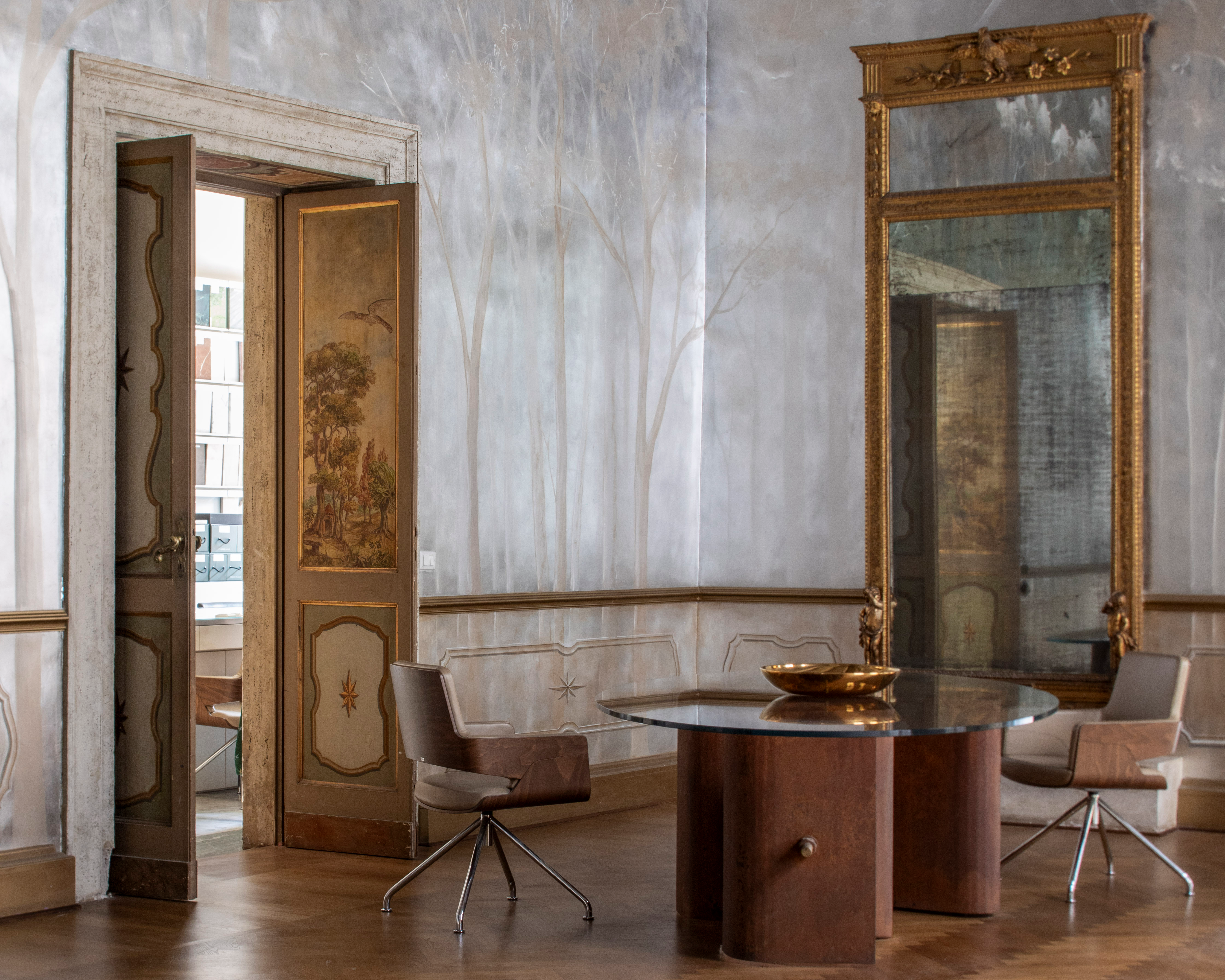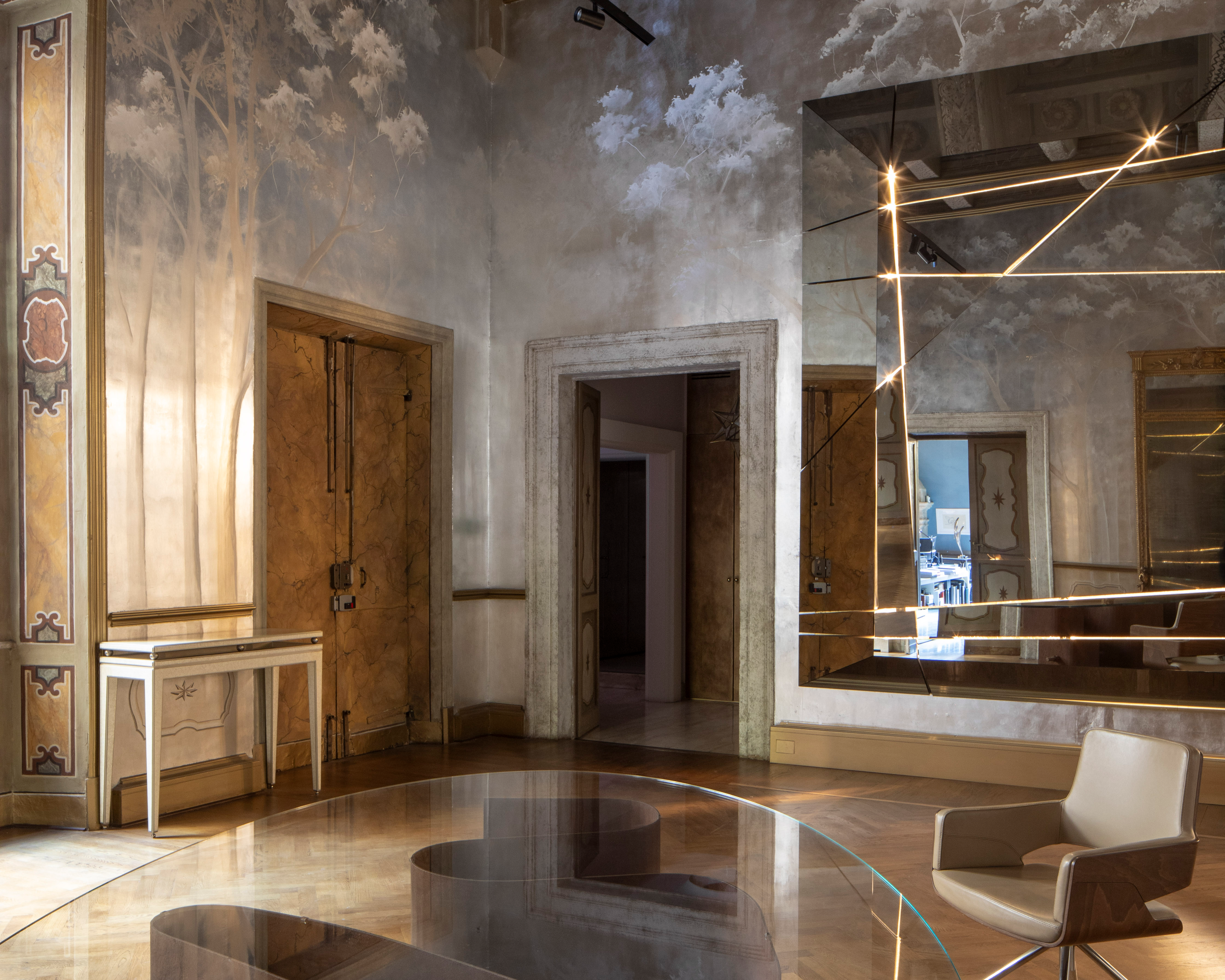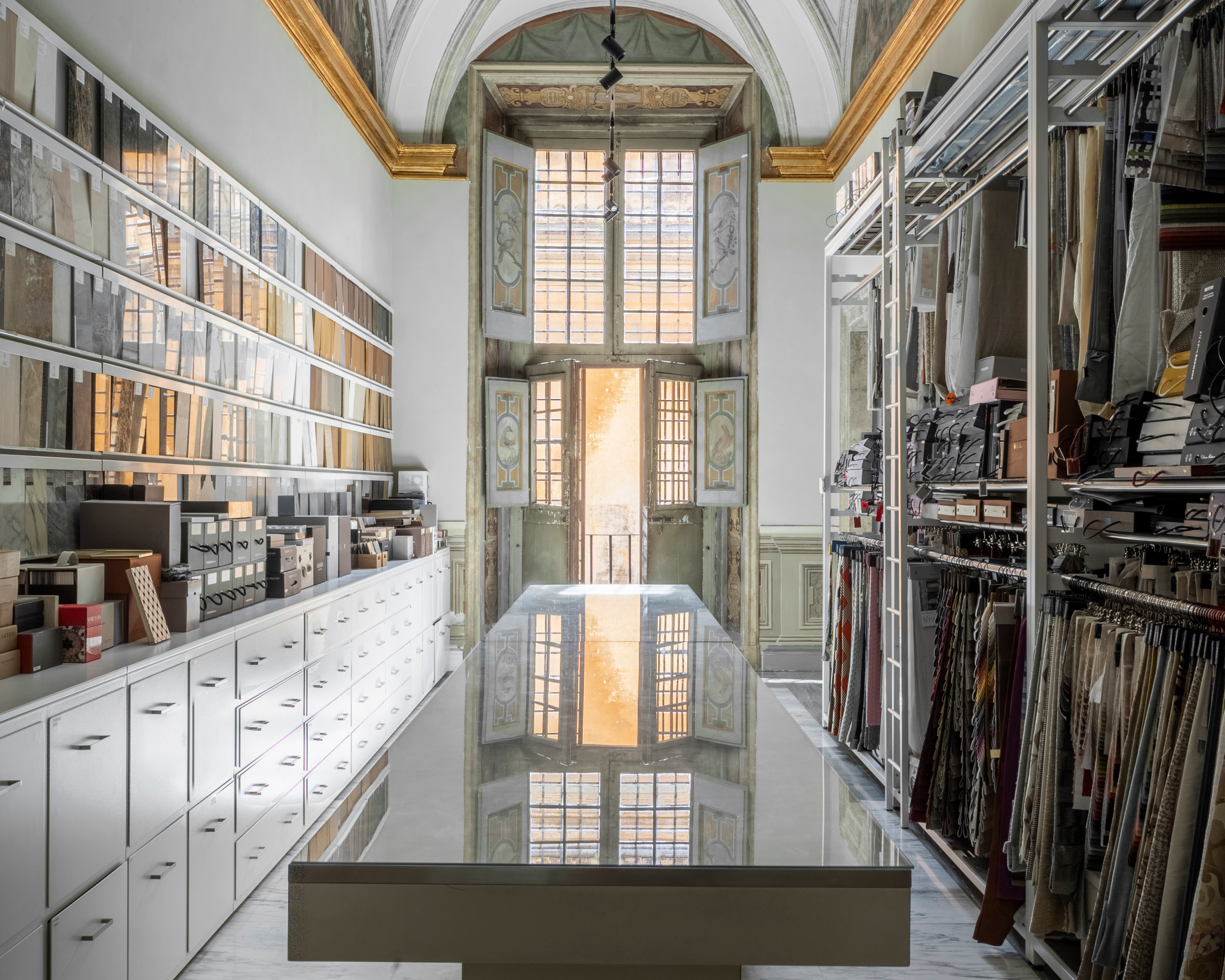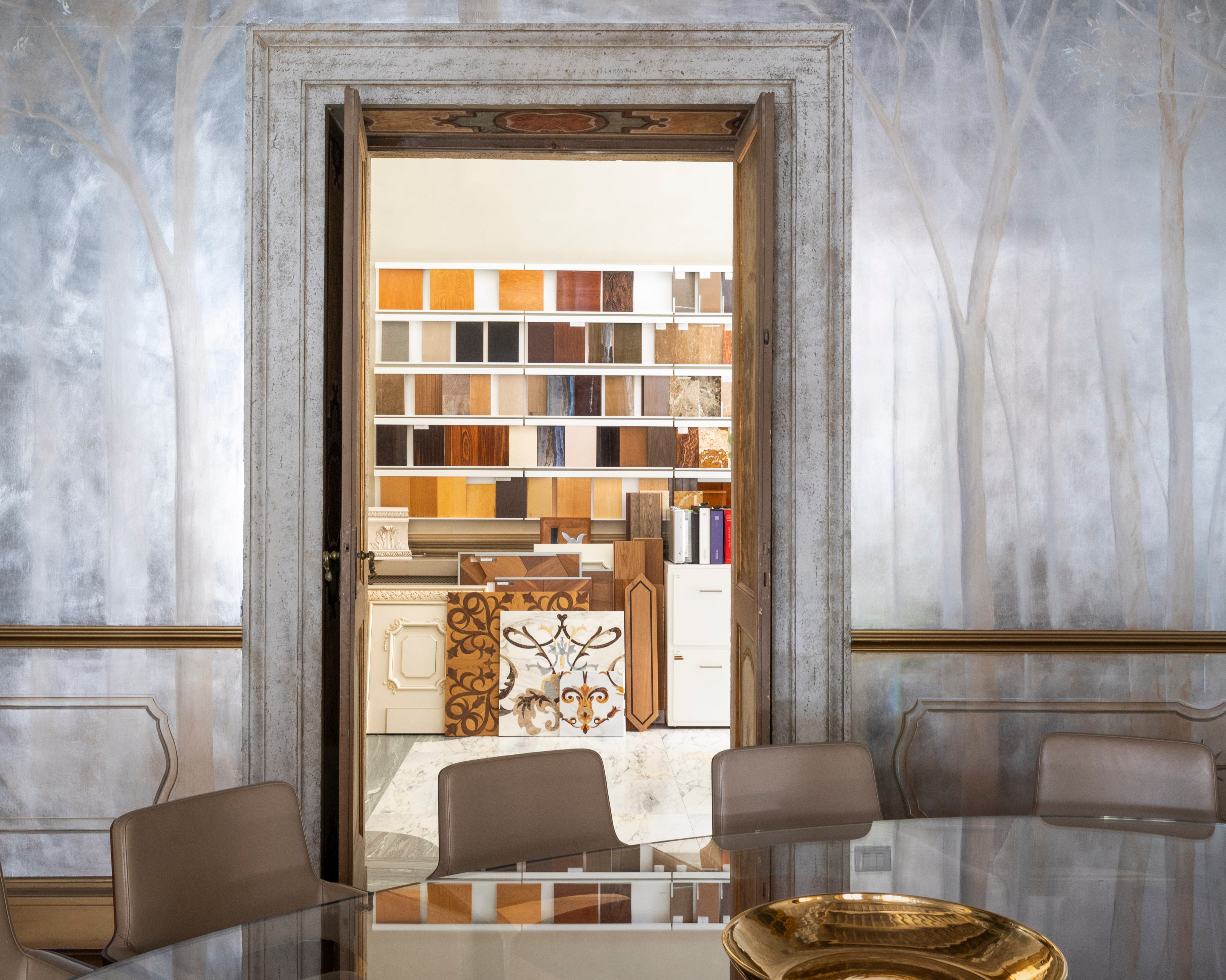 L’architetta Cecilia Brunori, design team leader dello studio Fabio Mazzeo Architects, ti guiderà in un’inedita esperienza tattile nella ‘materioteca’, la sala con lunette affrescate ispirate alla Genesi e dedicata ai materiali dell’interior design – marmi, tessuti, legni, superfici pregiate – per scoprirne qualità, origine e lavorazione. Alla fine della visita, condividerai un aperitivo nella sala degli specchi dove le superfici del tempo si intrecciano e si riflettono l’una nell’altra.